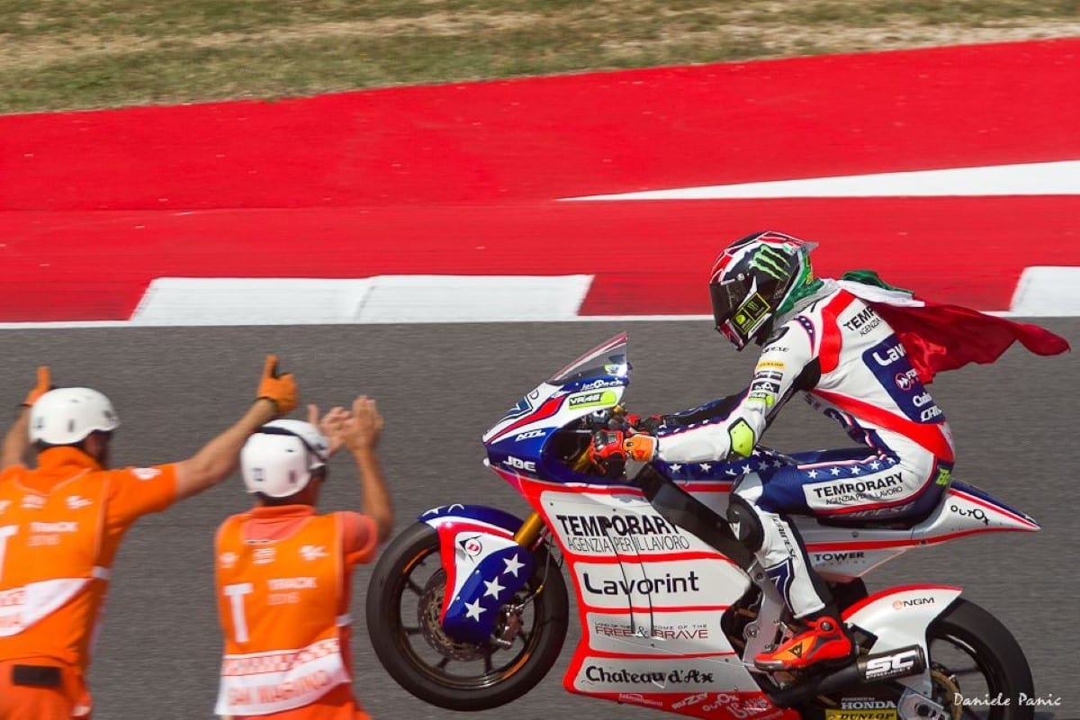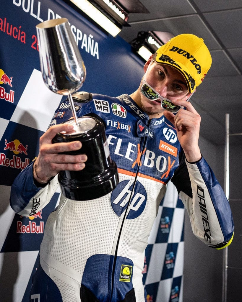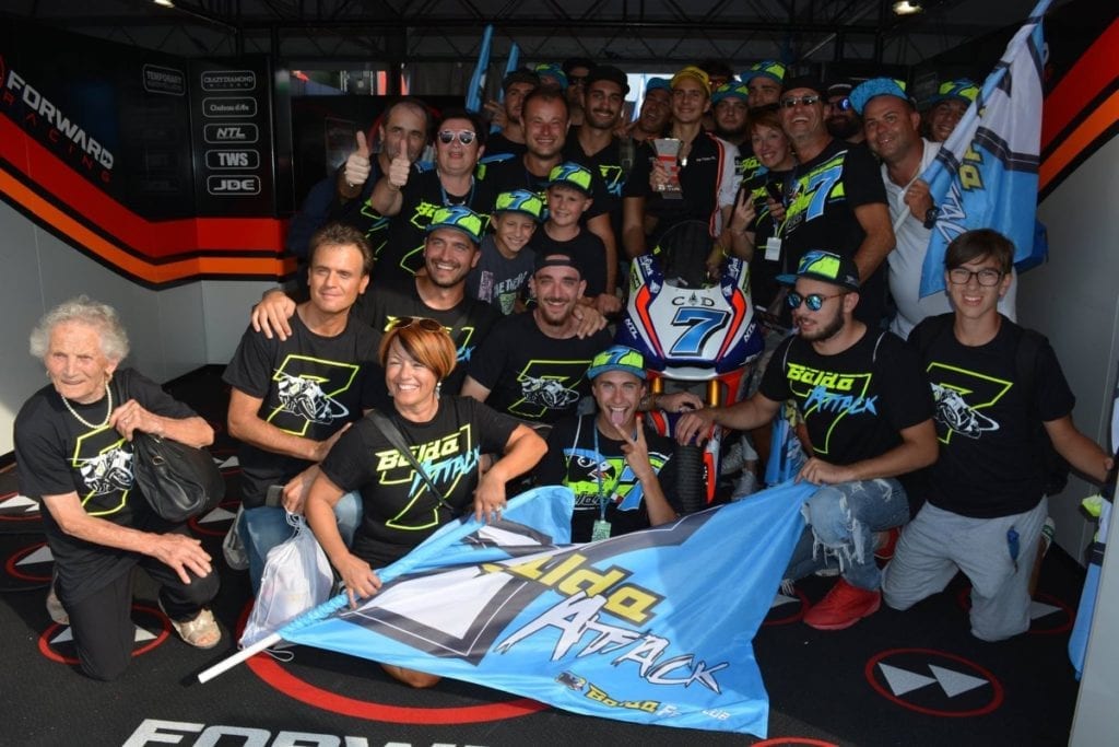 Rimane per un’altra stagione con Forward Racing, conquistando la sua prima vittoria nel Gran Premio di casa a Misano.